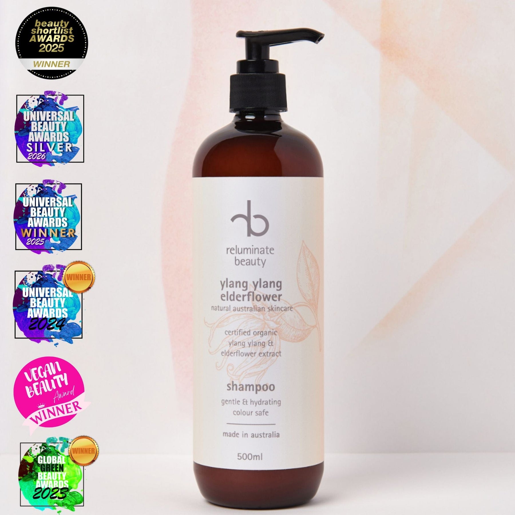 Massage into the scalp and lather through to the ends. Rinse thoroughly. Repeat if necessary. Follow with Ylang Ylang Elderflower Conditioner.