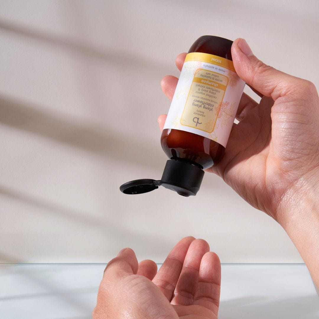 Massage into the scalp and lather through to the ends. Rinse thoroughly. Repeat if necessary. Follow with Ylang Ylang Elderflower Conditioner.