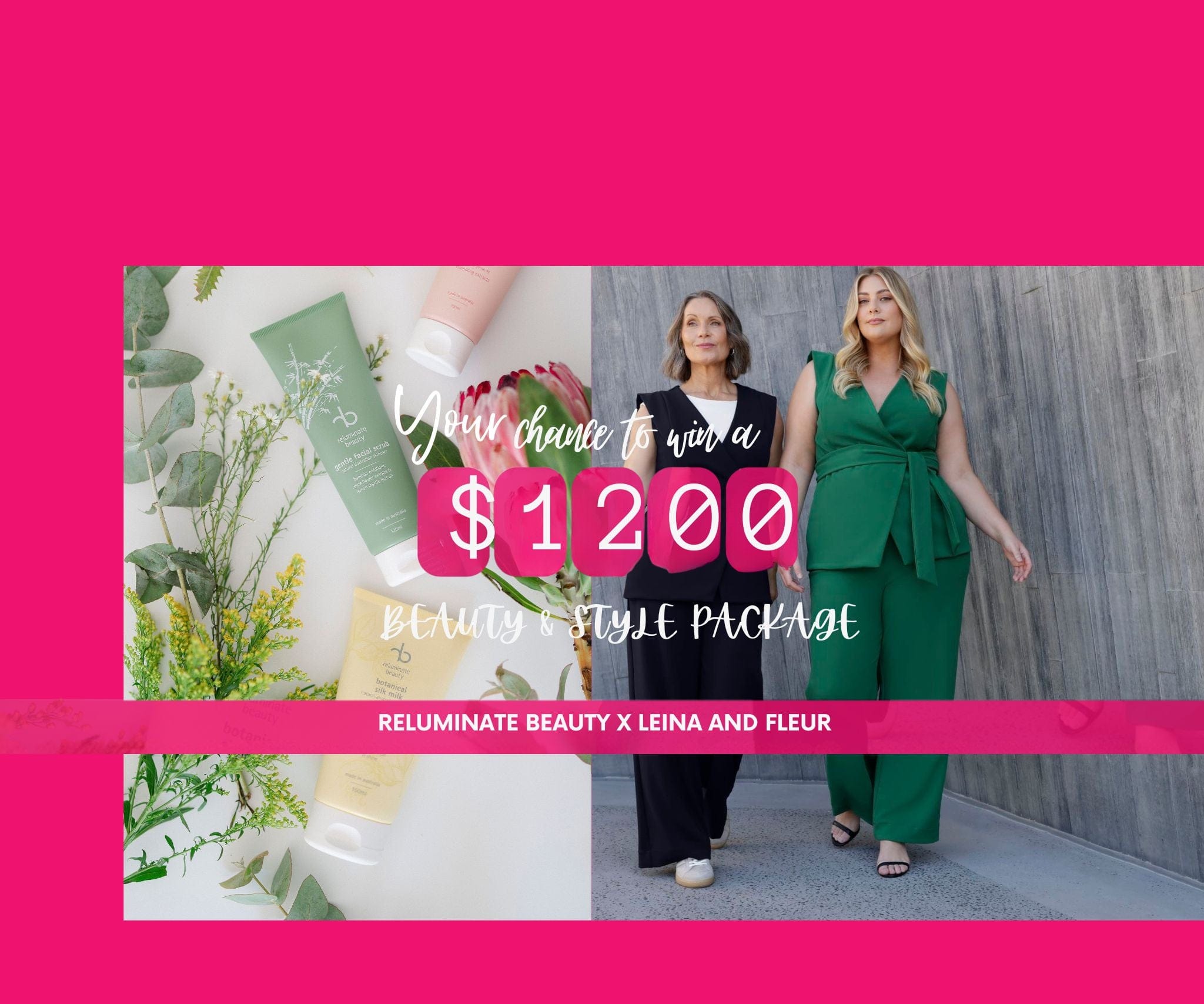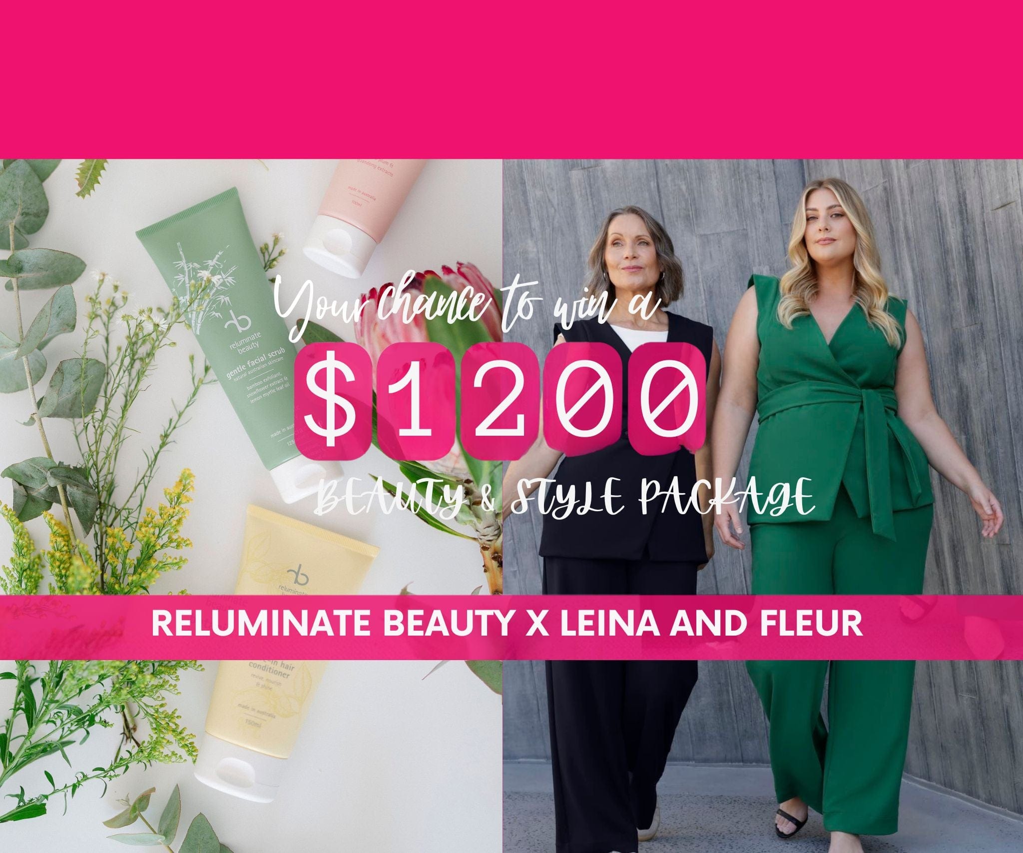 - The prize consists of a $600 Reluminate Beauty Gift Voucher and a $600 Leina & Fleur Wardrobe Voucher.