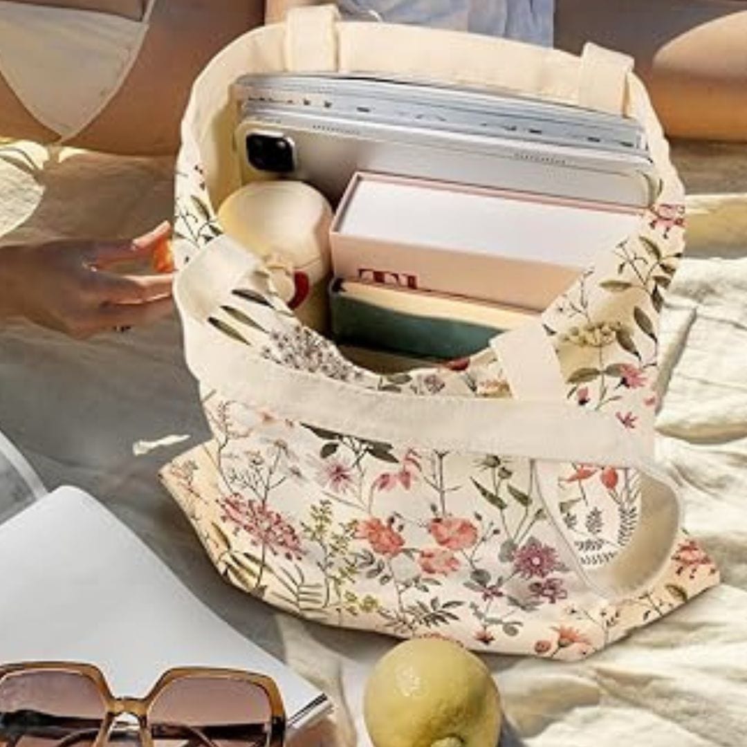 reluminate beauty Floral Cotton Canvas Tote – Foldable, Washable, Reusable Bag